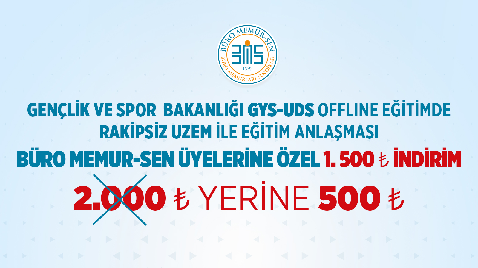 GENÇLİK VE SPOR BAKANLIĞI GYS-UDS OFFLINE EĞİTİMDE RAKİPSİZ UZEM İLE EĞİTİM ANLAŞMASI ; BÜRO MEMUR-SEN ÜYELERİNE ÖZEL 2.000 TL YERİNE SADECE 500 TL